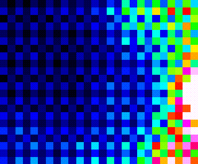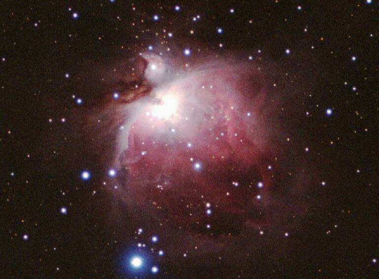 M42 - The Great Orion Nebula: This image of M42, The Great Orion Nebula, also shows the smaller M43 nebula to the upper left of M42. This image begs to be post processed. I had collected many images and was post processing some them several days later, just cherry picking some of the raw images, the rest have not been touched. I was working on the process, but taking advantage of the final good viewing days of spring, before the wild fires and then the humidity. I'm positive the above is an On the Fly Drizzle. I expect post processing of this image will provide quite impressive results. This night it was really becoming apparent, as well as the night before, that I could, with some refinement on the process, get some really good results. This was exciting. It was also another reason why I focused on two separate paths at the same time. Take images of interesting objects and save them for a later time when post processing could be performed efficiently. I figured that raw images could be post processed later using techniques I didn't understand or even know I needed. The second path was to work on the process of post processing images. However, that was also stopped, as I felt it was important to review my work and publish it. As I didn't want to loose anything I had learned. And this information was surely good for anyone else starting out. M42 enhanced CYMG raw image colorized to show intensity gradients:
