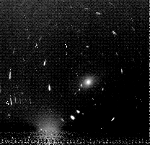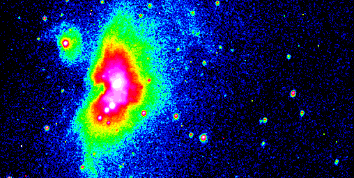 This image is interesting for what it is, but also, what can be done with some post processing may be quite amazing. This is a CYMG raw image, which causes the granularity. It needs to be converted to luminosity and then drizzled. I believe I have a couple hundred images of M42 just waiting to be post processed. Above is a colorized intensity image of a raw CYMG image of M42. Note the granularity is very distinct in this image, as I set the histogram to best display the CYMG effect. This image was not flipped. A close up with a full range of intensities shown. Note the effect of the CYMG color matrix. You can see the MGMG verses the GMGM rows, while the CYCY rows do not reverse. When an image is converted from CYMG to Luminosity, and then the intensities are mapped with color, a more uniform version of the image appears. This image shown corresponds to the image just above, but zoomed in on the right side middle of the corresponding luminosity image. The above image is the Green component of the same M42 image, colorized to show the CYMG pattern is not compensated for well by the Meade software. The Red and Blue components have similar "issues". Reference Image of M42: Moon: I couldn't get the granularity to go away (dah). The above was a drizzle of CYMG raw images. M81: Above is an on the fly drizzle of M81 Galaxy. The above is an enhanced image of one of the CYMG raw images captured. It clearly shows the presence of the spiral arms of M81. The exposure time was significant, as the star field is streaked. The black circle in the middle has to do with my playing with Photoshop's histogram function, which is much nicer than Meade's Image Processing. However, this was before I found the FITS Liberator, so I had to convert the image to a BMP or JPG, which reduces the data range making histogram processing almost useless. The above image is a raw image of M81 with a shorter exposure to remove the star field streaking. It barely shows the minimal amount of light collected from the spirals, but they are visible even in the individual exposures. Top to center of left is the data drivers heat generated by the CCD chip. The colorization is inverted (black is brightest). The spectrum used contains 16 "bands" of spectrums to show the minor fluctuations at all levels of intensity. M81 Reference Image: |