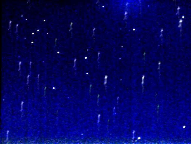 Note that moving the mouse over the above and below image shows the star pattern visible in the reference shot below. I managed to pick a star for the M37 for centering, but I picked a bad spot at the far right top for the rotation. So basically the images were not adjusted for rotation as can be seen. The circular tracks are from stars that are rotating relative to the image, while the longer streaks are other bad spots. No raw or uncombined images were saved. Choosing a bad spot during an on the fly drizzle can make a big mess and completely ruin an observation unless you save your raw or uncombined images. Post processing is an art and each image has it's own challenges. And finally, in most of the images you will see an edge with a bright area. In the above image, it is at the top on the right about a 1/3 from the edge. It is caused by heat. Apparently, the CCD chip is not designed for this exact use, and therefore no provision was made for the data line drivers to be far enough from the CCD array so that the heat would not transfer. Since Sony designed this chip to be used in video camcorders for use in low light situations, it was fine. Using exposure times of 1/10 or even 1/2 second was fine. But with exposures of 8 to 120 seconds, the heat bleed is quite visible. This effect should be handled by appropriate dark and bad spot processing.