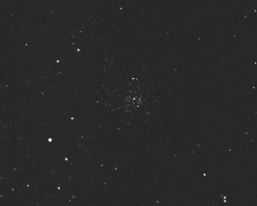 Move your mouse pointer over the picture above and compare it to the reference image below. Notice the star pattern above matches the one in the lower left quadrant of the reference image below. The image above is missing the center of M35. This image is important as it proves it is nearly impossible to find objects via the imager on the screen. E.G., it was critical that the telescope point to the correct position in the sky, which meant more attention to the tripod setup and initial alignment procedure was necessary. Also, when the batteries start to go, the tracking is farther off. Battery life for the 6 AAs adapter I use is 3 hours with reasonable accuracy, with a 6 hour life. Old batteries are significantly less. I suggest buying the AC Adapter from Meade or anyone else with a 9v - I believe 1500 MA (milliamps) is minimum required. 300MA will not drive the motors. Radio shack can provide an adapter and a 9v connector that you can put together for about $35. Reference image of M35: